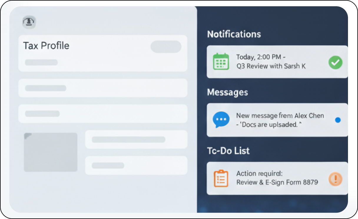 Empower your clients with convenient access to their documents, appointments, invoices, and communications, all in one centralized location. Provide a modern, transparent, and efficient experience that strengthens client relationships and frees up your team's valuable time.