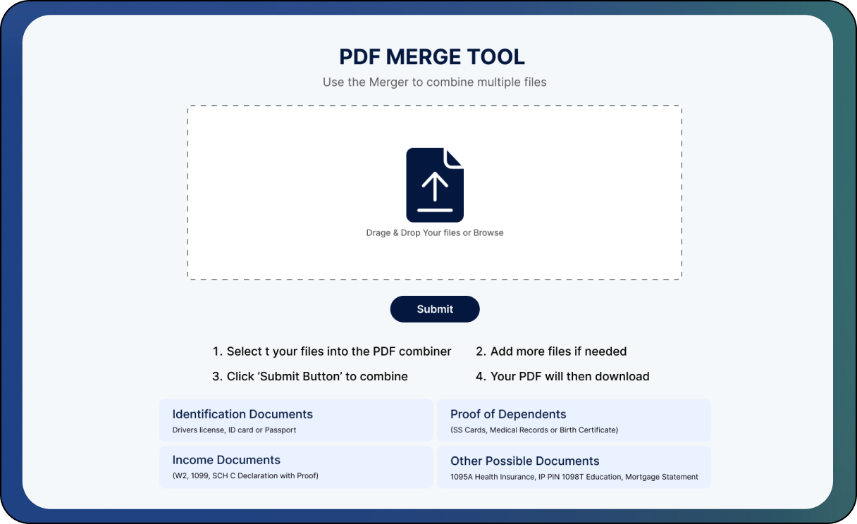 tool allows you to quickly and securely combine multiple PDF files into a