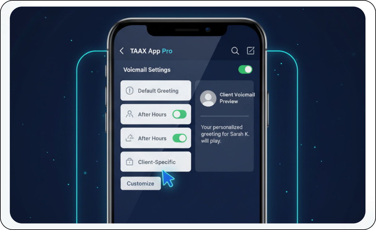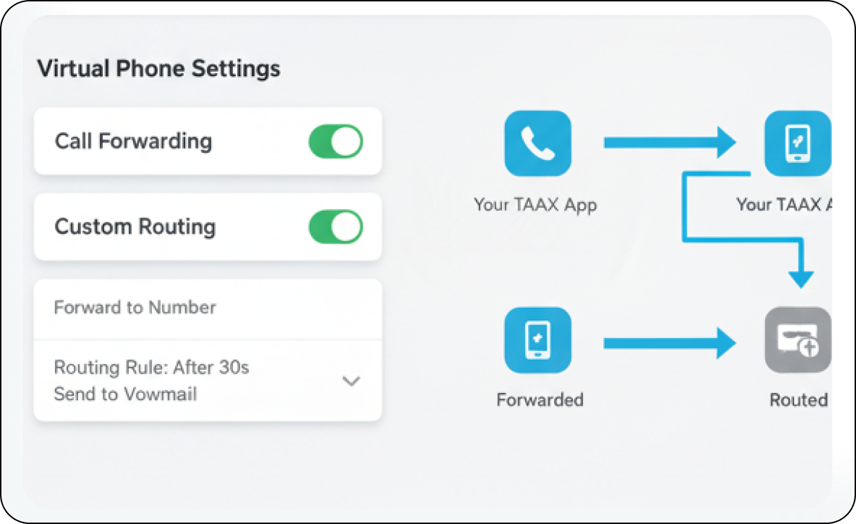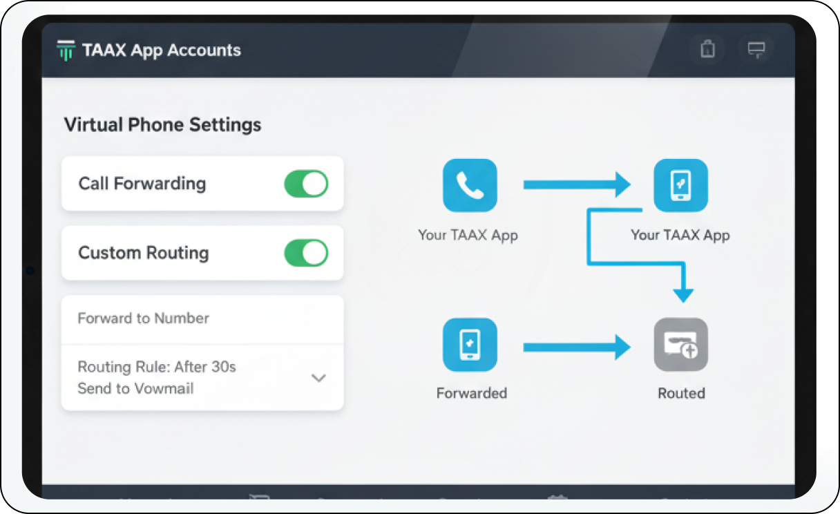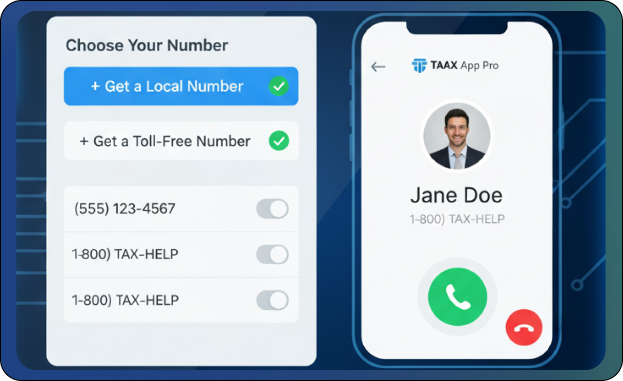 Bring all your communication channels together. The Virtual Phone system unifies your calling with other essential TAAX App Pro features for a truly comprehensive experience. Access your full TAAX App Pro Virtual Phone functionality through dedicated, feature-rich mobile and desktop applications. This ensures you can make and receive business calls, manage advanced features, and stay connected with your clients and team from anywhere, on any device, maintaining full business mobility and flexibility.